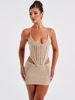 Knit Skirt Two Piece Sets For Women Backless Lace Up Sleeveless Crop Top And Mini Skirt Femme Club Party Skirt Set