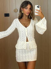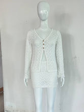 Knit Skirt Two Piece Sets Women Hollow Out V Neck Long Sleeve Cardigans And Mini Skirt Matching Sets