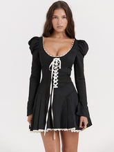 Lace Bandage Puff Sleeve Mini Dress For Women 2025 Autumn Winter Square Collar Ruched Dress Vintage Elegant