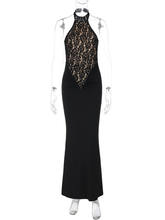 Lace Halter Backless Maxi Dress For Women Black Off-shoulder Strapless Sleeveless Bodycon Club Party Long Dress