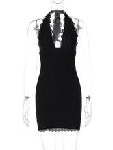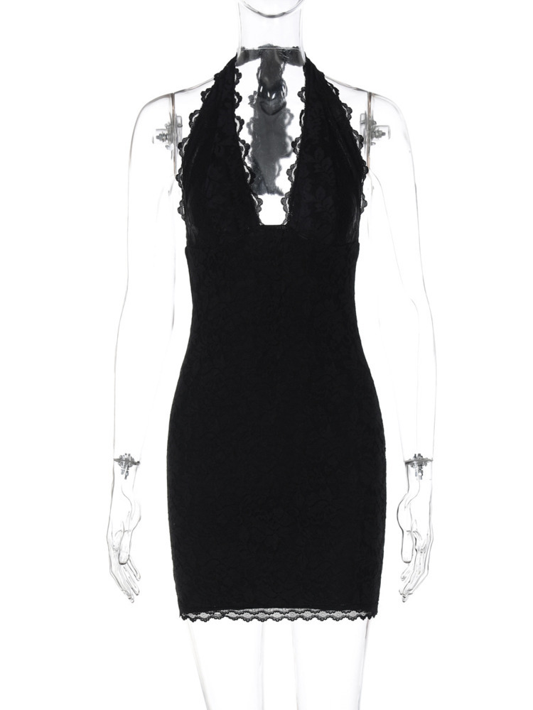 Lace Halter Mini Dress For Women Robe Off-shoulder Deep V Neck Sleeveless Backless Skinny Club Party Dress Robe