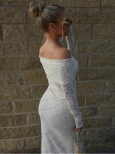 Lace Off-shoulder Maxi Dress For Women White Strapless Long Sleeve Backless Bodycon Club Party Long Dress