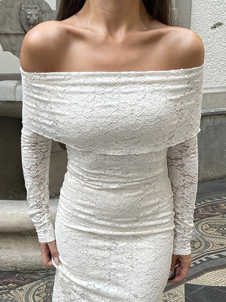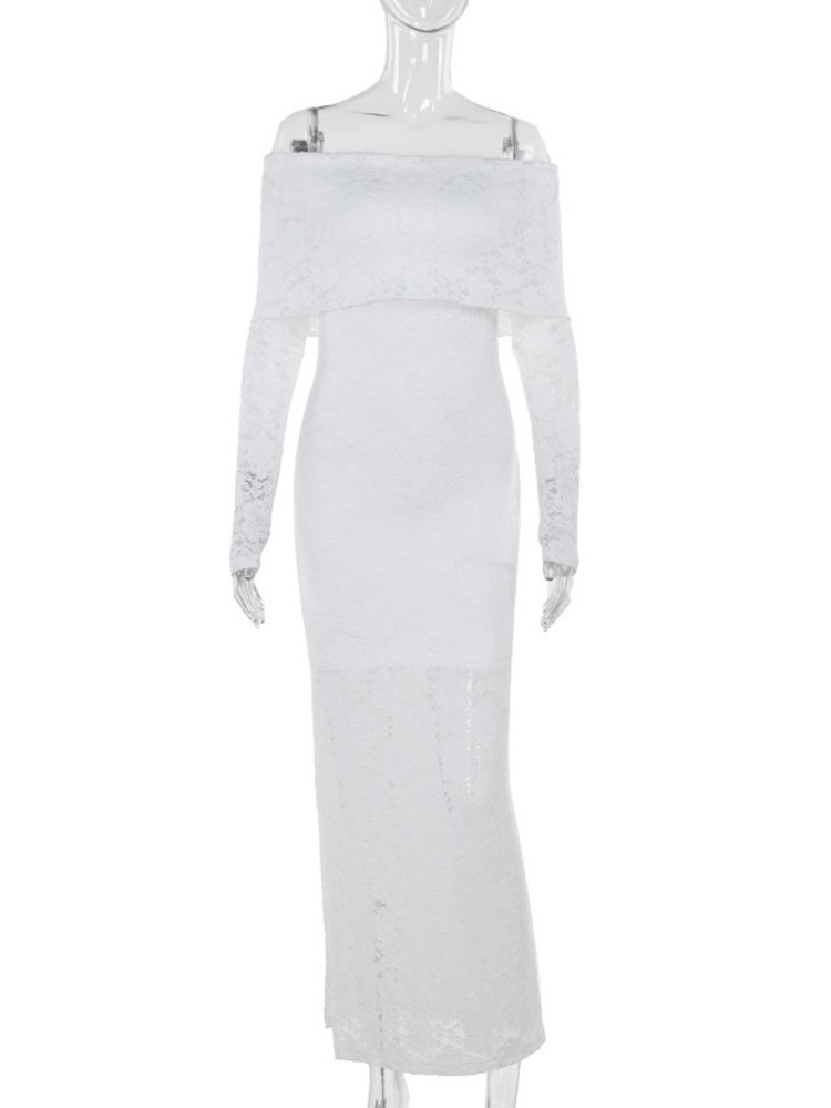 Lace Off-shoulder Maxi Dress For Women White Strapless Long Sleeve Backless Bodycon Club Party Long Dress