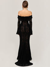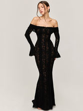 Lace Off-shoulder Maxi Dress Women Strapless Backless Long Sleeve Bodycon Evening Club Party Long Dress Elegant