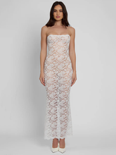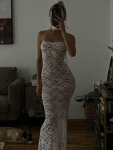 Lace See Through Midi Dress For Women Off-shoulder Strapless Sleeveless Backless Bodycon Club Party Dress