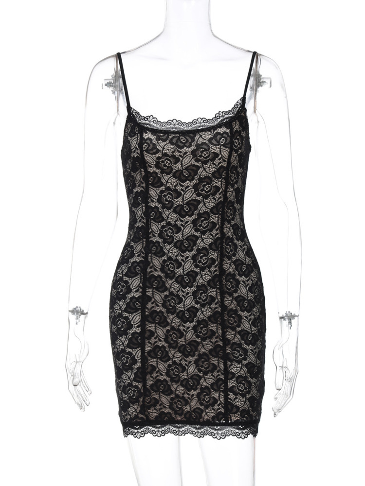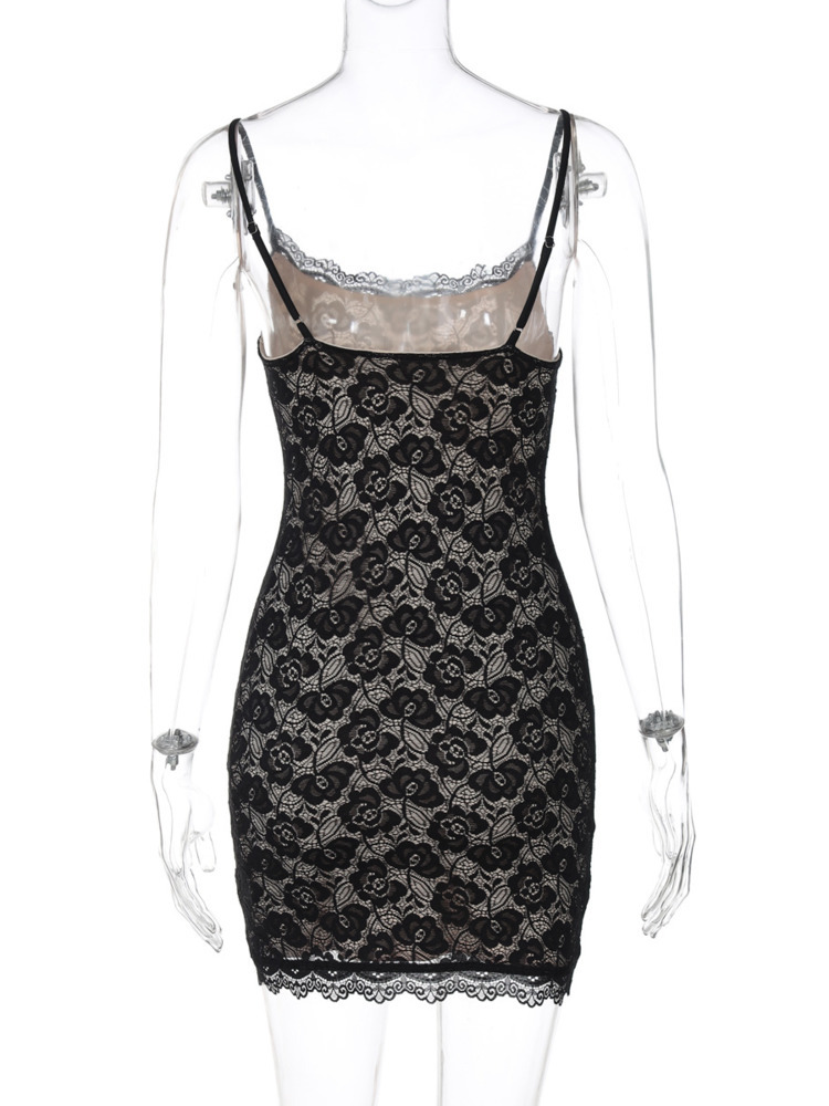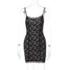 Lace Spaghetti Strap Mini Dress For Women Robe Off-shoulder Sleeveless Backless Floral Print Skinny Dress