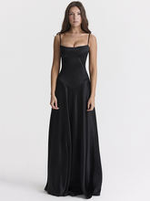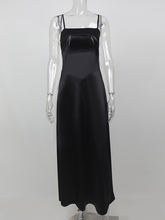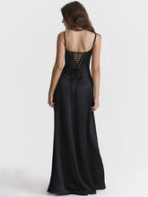 Lace-up Satin Maxi Slipdress Women Black Spaghetti Strap Sleeveless Backless Maxi Dress Femme Club Party Evening Dress