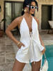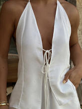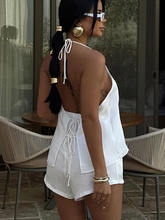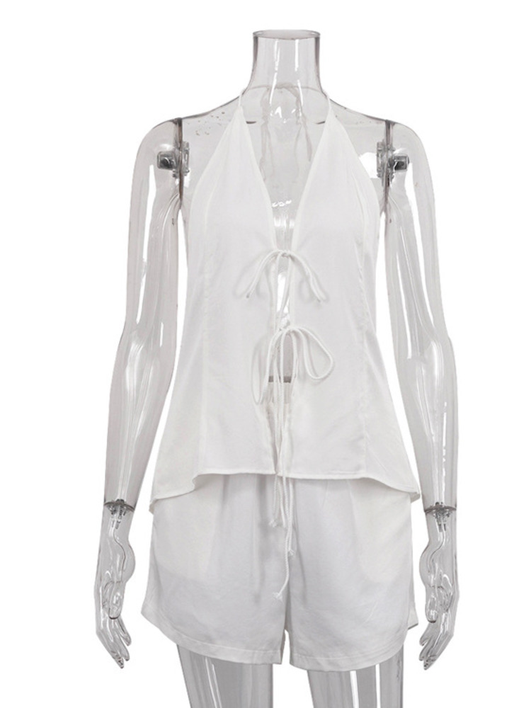 Lace-up Two Piece Set Women White Halter Cropped Tops And Shorts Female Two-piece Sleeveless Top High Waist Shorts