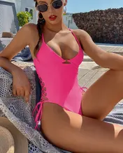 Lace Up Underwired High Cut Female Thong Swimwear One Piece Swimsuit Women Backless Monokini Bather Bathing Suit Swim Lady