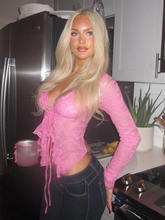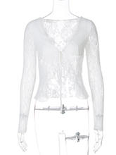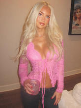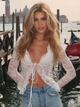 Lace V-neck See Through Lace-up Long Sleeve Cardigan Crop Top For Women Hollow Out Slim Club Party Tops