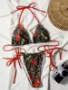 Leopard Cherry Print Halter High Cut Bikini Women Swimwear Female Swimsuit Two-pieces Bikini set Bather Bathing Suit Swim Lady