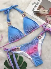 Leopard Crystal Diamond Bikini Women Swimsuit Female Halter Swimwear Two Pieces Bikini set Rhinestone Bathing Suit Swim