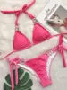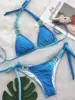 Leopard Crystal Diamond Bikini Women Swimsuit Female Halter Swimwear Two Pieces Bikini set Rhinestone Bathing Suit Swim
