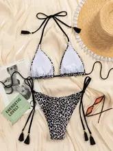 Leopard Halter High Cut Strappy Pleated Bikini Female Swimsuit Women Swimwear Two-pieces Bikini Set Bather Bathing Suit Swim