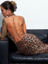 Leopard Print Backless Maxi Dress For Women Gown Halter Strapless Sleeveless Bodycon Printed Long Dress