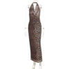 Leopard Print Backless Maxi Dress For Women Gown Halter Strapless Sleeveless Bodycon Printed Long Dress