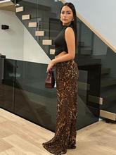 Leopard Print High Waist Maxi Skirt Women Autumn Winter Slim Fit Elegant Club Party Print Long Skirts