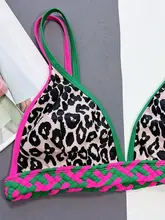 Leopard Print Splicing High Cut Bikini Female Swimsuit Women Swimwear Two-pieces Bikini Set Weaved Bather Bathing Suit Swim Lady
