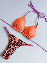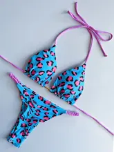 Leopard Scrunch Butt Micro Thong Bikini Women Swimwear Female Swimsuit Two-pieces Bikini Set Halter Bather Bathing Suit Swim