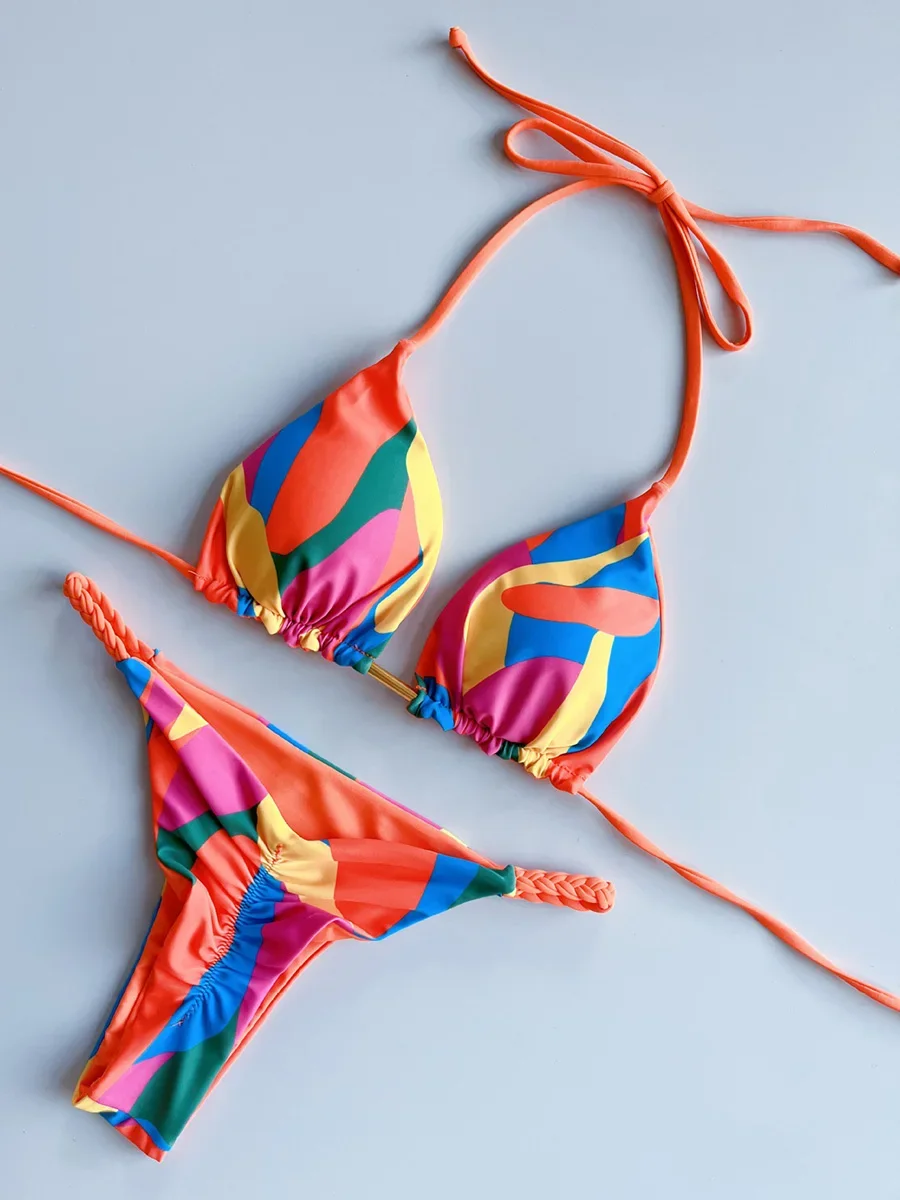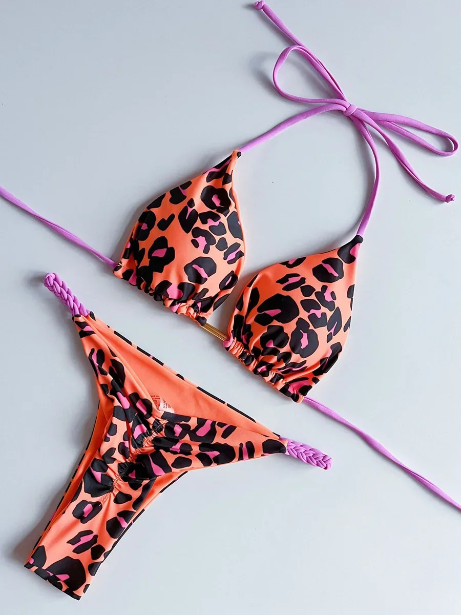 Leopard Scrunch Butt Micro Thong Bikini Women Swimwear Female Swimsuit Two-pieces Bikini Set Halter Bather Bathing Suit Swim