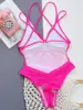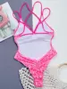 Leopard V Neck FemaleSwimwear One Piece Swimsuit Women Criss Cross Backless Scrunch Butt Monokini High Cut Bathing Suit Swim