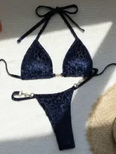 Leopard Velvet Bikini Mini Micro Thong Bikinis Women Swimwear Female Swimsuit Two-piece Bikini Set Halter Bathing Suit Swim