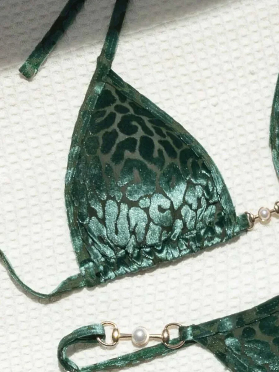 Leopard Velvet Bikini Mini Micro Thong Bikinis Women Swimwear Female Swimsuit Two-piece Bikini Set Halter Bathing Suit Swim