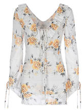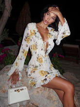Long Sleeve Flower Deep V-neck Print Backless Mini Dress For Women Slim Lace-Up Club Party Dress Ladies Outfits