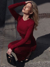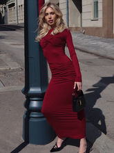 Long Sleeve Knit Dress For Women O Neck Strapless Bodycon Maxi Dress Ladies Knitted Pullover Sweater Dress