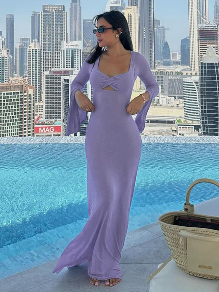 Long Sleeve U-shaped Collar Bodycon Maxi Dress For Women Slim Fit Elegant Holiday Party Dress Autumn