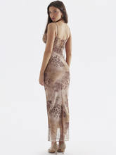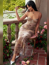 Mesh Floral Print Maxi Dress Women Spaghetti Strap Sleeveless Lace-up Split Sundress Ladies Club Party Long Tank Dress