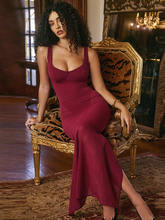Mesh See Through Maxi Dress For Women Burgundy Spaghetti Strap Sleeveless Backless Elegant Club Party Long Dress