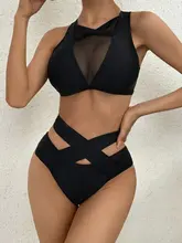 Mesh Sheer Hollow Out Bikini Female Swimsuit Women Swimwear Two-pieces Bikini Set See Through Bather Bathing Suit Swim Lady