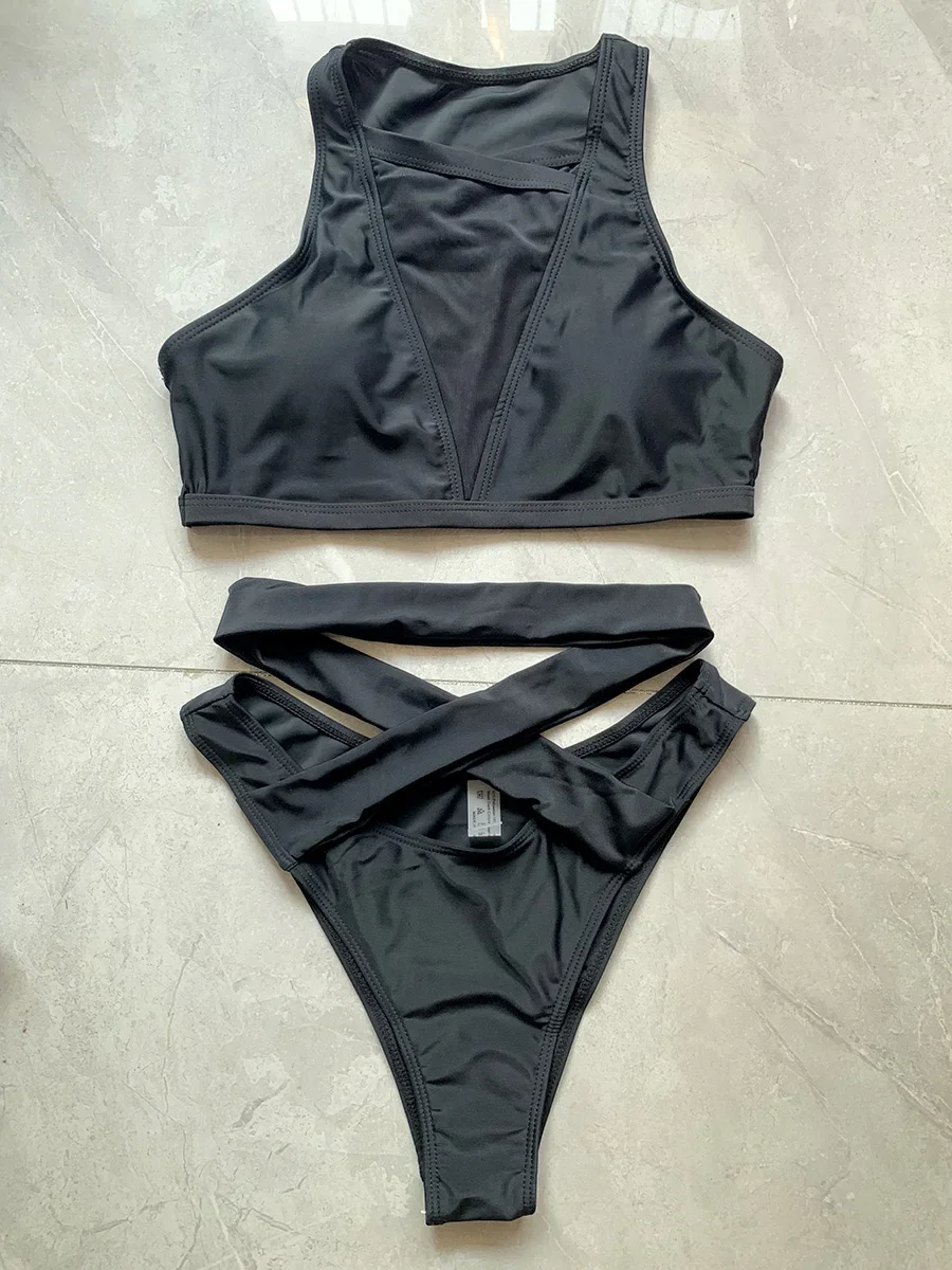 Mesh Sheer Hollow Out Bikini Female Swimsuit Women Swimwear Two-pieces Bikini Set See Through Bather Bathing Suit Swim Lady