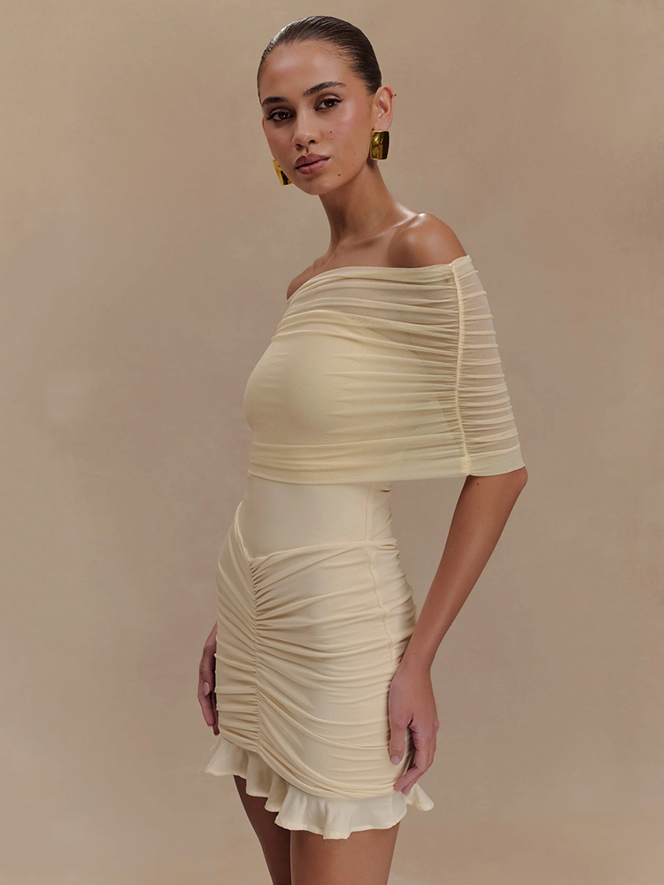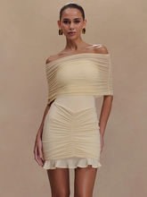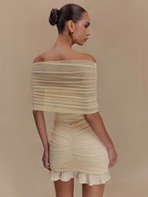 Mesh Strapless Off-shoulder Ruffled Mini Dress For Women Backless High Waist Female Ruched Party Dress