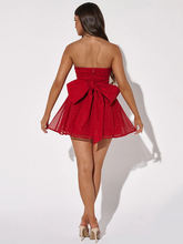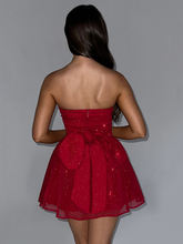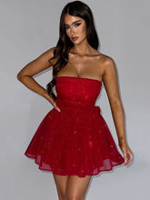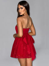 Mesh Strapless Sparkle Mini Dress For Women Backless Bow Pleated Dresses Femme Club Party Dress Elegant