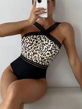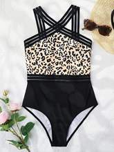 Mesh Tape Swimsuit One Piece Leopard 2025 Swimwear Women Cross High Neck Bathing Suit Female Swimming Summer Beachwear