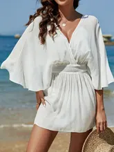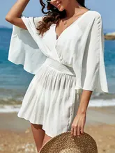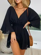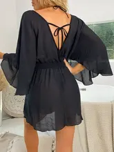 Mesh V Neck Long Sleeve Chiffon Tunic Beach Cover Up Beach Cover-ups Beach Dress Backless Beachwear Female Kaftans for Woman