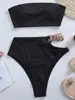 Metal Chain Ribbed Female Bandeau Swimsuit High Waist Bikini Women Swimwear Two-pieces Bikini set Asymmetric Bathing Suit Swim