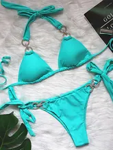 Metal Chains Rhinestone Diamond Bikini Women Swimsuit Female Swimwear Two Pieces Bikini Set Halter Bathing Suit Swim Beach Wear