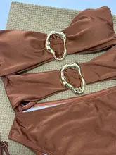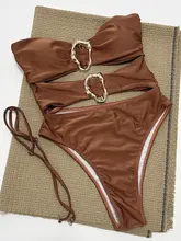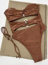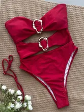 Metal Ring Hollow Out Women Swimwear One Piece Swimsuit Female Bandeau Monokini High Cut Bather Bathing Suit Swim Beachwear