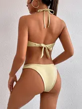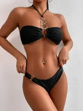 Metal Rings Halter Bandeau Bikini Women High Cut Swimwear Female Swimsuit Two-pieces Bikini Set Strappy Bathing Suit Swim