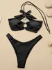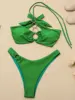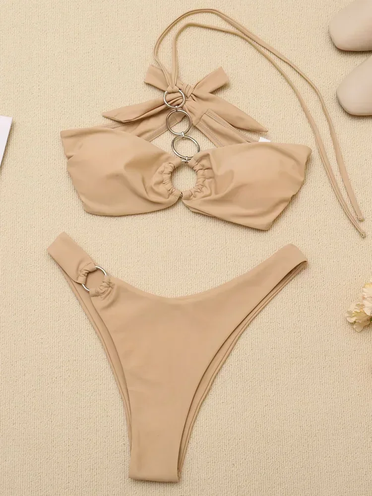 Metal Rings Halter Bandeau Bikini Women High Cut Swimwear Female Swimsuit Two-pieces Bikini Set Strappy Bathing Suit Swim
