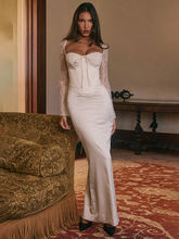 Moziision Lace Long Sleeve Maxi Dress For Women White Square Collar Backless Back Split Bodycon Club Party Long Dress