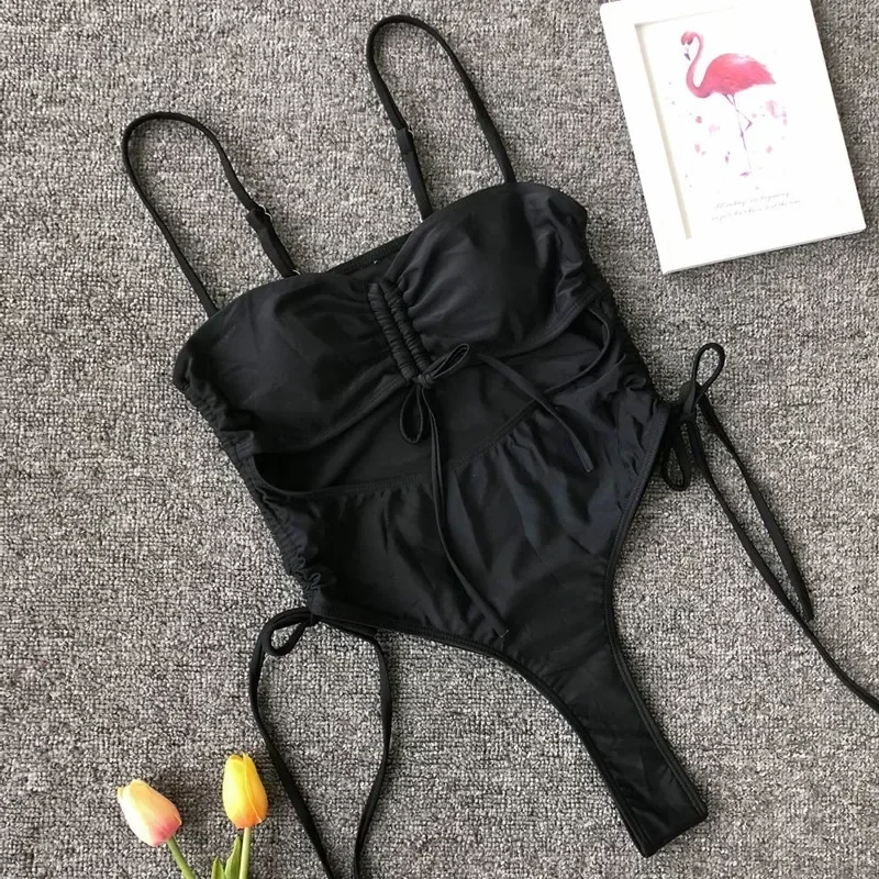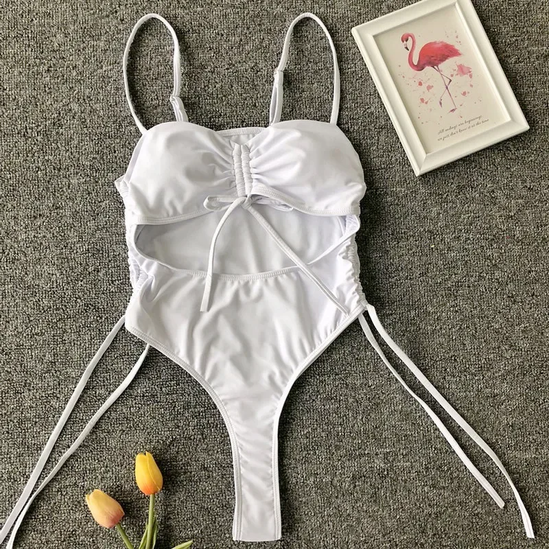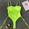 Neon Green Tummy Cut Out Female Swimwear One Piece Swimsuit Women Thong String Monokini High Leg Cut Bathing Suit Swim Bodysuit