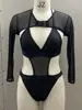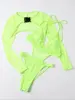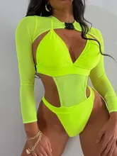 Neon Long Sleeve High Cut Out Women Swimwear One Piece Swimsuit Female Mesh Monokini Bather Bathing Suit Swim Lady Beachwear