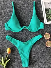 Neon V-bar Underwired Bikini 2025 Female Ribbed Swimsuit Women Thong Swimwear Two-pieces Bikini set Push up Bathing Suit
