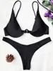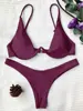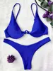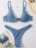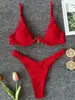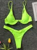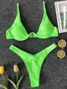 Neon V-bar Underwired Bikini 2025 Female Ribbed Swimsuit Women Thong Swimwear Two-pieces Bikini set Push up Bathing Suit