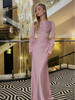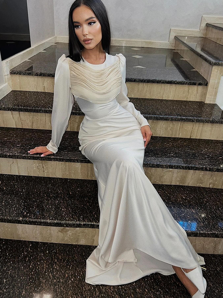 O Neck Long Sleeve Maxi Dress For Women Elegant Solid Ruched High Waist Bodycon Long Dress Clubwear