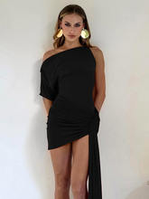 Oblique Shoulder Backless Irregular Mini Dress For Women Sleeveless Draped Ruched Club Dress Elegant